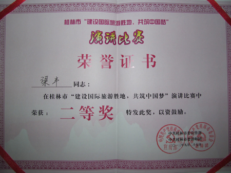 Beat365官网选手在桂林市“建设桂林国际旅游胜地,共筑中国梦”演讲比赛中获佳绩