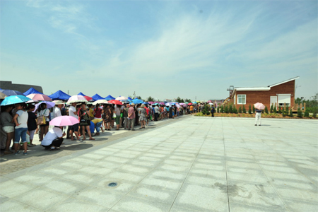 Beat365官网参赛作品前等待参观的公众排起了长队