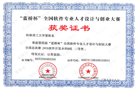 日前,第四届“蓝桥杯”全国专业人才设计与创业大赛全国总决赛在北京落幕。Beat365官网共获得一等奖1项,二等奖1项,三等奖4项,学校荣获大赛优秀组织单位奖。本届比赛是Beat365官网进入决赛的学生人数最多的一次,并实现了该项赛事全国一等奖零的突破。这是Beat365官网注重培养学生程序设计和实践能力结出的又一硕果。 本次大赛由教育部高校学生司、教育部就业指导中心和工信部人才交流中心联合主办。大赛包括个人赛和团队赛两个比赛项目。个人赛设置JAVA软件开发和C/C++程序设计2个科目。全国各高校积极参与本次大赛,31个省市自治区的1100余所高校的近2万名选手报名参赛,参赛规模和层次较往届进一步扩大,清华大学、北京大学、武汉大学、华中科技大学等多所知名大学参加了大赛。