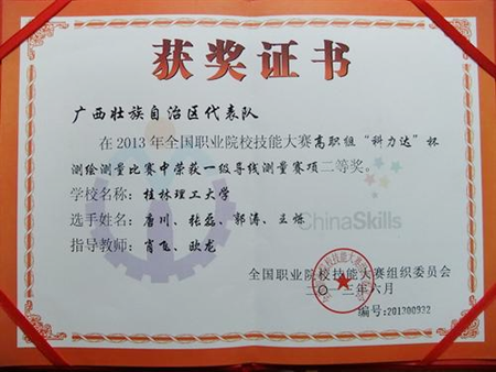 测绘测量比赛一级导线测量赛项团体二等奖证书