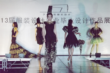 本次参展的150多套服装均由学生自行设计,作品融合了民族传统的服饰文化,并结合现代服饰文化底蕴,以独特大胆的设计眼光和精美的服饰设计,展示了现代服饰设计的时尚潮流,凝聚了同学们四年来辛勤努力的汗水,体现了他们在师长们的谆谆教诲下不断追求的创新与活力。专业模特的展示获得了现场师生的阵阵掌声。