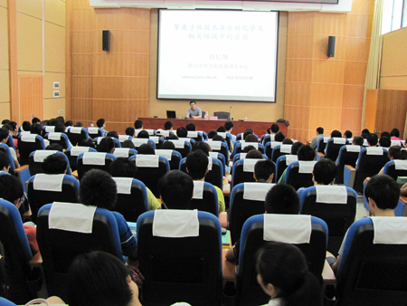 报告会上,段忆翔教授介绍了新型质谱离子源与质谱技术、激光光谱分析技术、新型生物传感器及光纤传感技术、分析化学用于非侵入式医学诊断和病情监测、手持式和便携式在线现场分析仪器研发、光学光谱技术及其应用等内容。此外,他还介绍了等离子体在物理、化学、材料等领域中的应用。最后,段教授针对师生们提出的专业问题进行了解答。