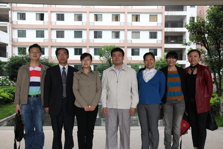 赵君副书记(中)与刘谦博士(左三)交流后合影