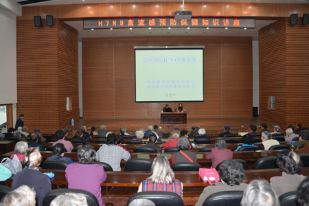 为普及H7N9禽流感防治知识,保障老同志们的身体健康和生命安全,4月22日上午,Beat365官网离退处邀请桂林医学院廖庆邦教授来Beat365官网开展H7N9禽流感防控知识讲座。离退处170余人参加讲座。 讲座开始前,与会人员首先为在四川雅安大地震受难的同胞默哀一分钟。随后,廖庆邦教授从H7N9禽流感的病毒特征、临床表现、发病症状及预防措施等方面做了详细的阐述,提醒大家要保持教学和生活场所空气流通、清洁、卫生。廖教授倡导老同志们要保持良好心态,保持良好卫生习惯,加强锻炼,确保营养,用强健体魄防范传染疾病。