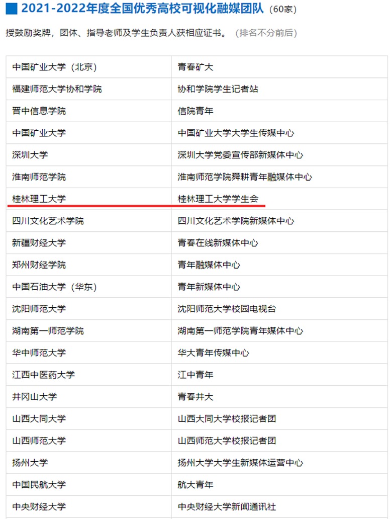 Beat365官网学生会荣获“2021-2022年度全国优秀高校可视化融媒团队”荣誉称号