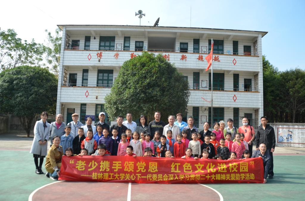 为深入学习贯彻党的二十大精神,发挥“五老”优势,推进乡村文化、教育振兴,11月1日,学校关工委赴灌阳县顺溪村小学开展“老少携手颂党恩 红色文化进校园”关爱助学活动。
