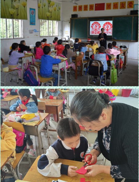 在二年级学生教室里,闵江红老教授以“民族团结一家亲——少数民族剪纸”为主题,带领孩子们走进剪纸非遗文化,手把手地指导孩子们用剪刀剪出壮族、苗族、侗族等少数民族孩子的人物形象,在寓教于乐中用孩子们喜闻乐见的形式,以红色文化、民族团结精神浸润着每一个顺溪小学学子。