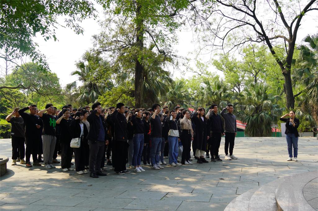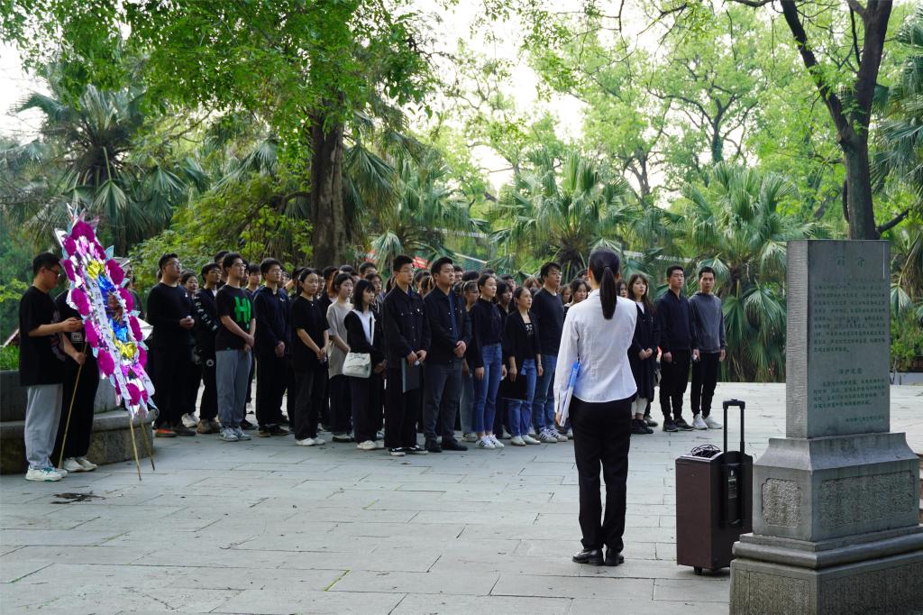 活动伊始,解说员向同学们讲解了中国共产党发展历程以及桂林保卫战概况,并讲述了陈光烈士生平事迹。大家怀着崇高敬意、沉重心情向革命烈士纪念碑集体默哀三分钟,向革命烈士三鞠躬并敬献花圈。学院党委副书记唐丽华上前整理挽联,以无限的哀思表达对革命先烈的缅怀之情。