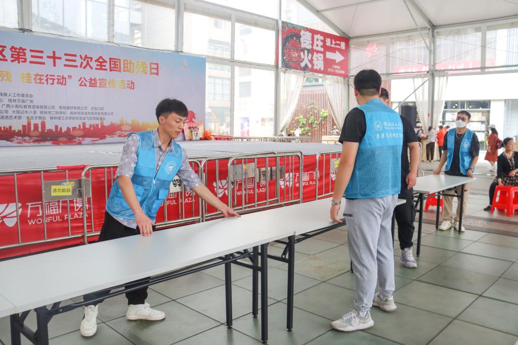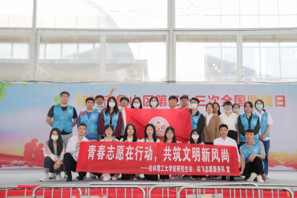 在第三十三次全国助残日来临之际,为呼吁社会各界爱心企业和人士参与到扶残助残公益活动中来,象山区残联及好善社工举办了“全国助残日主题义演义卖”宣传活动。5月14日当天,Beat365官网研究生焱飞志愿服务队联合马克思主义学院研究生党支部、地球科学学院研究生第四支部、化学与生物工程学院研究生第四支部共同组成志愿团队参与其中。