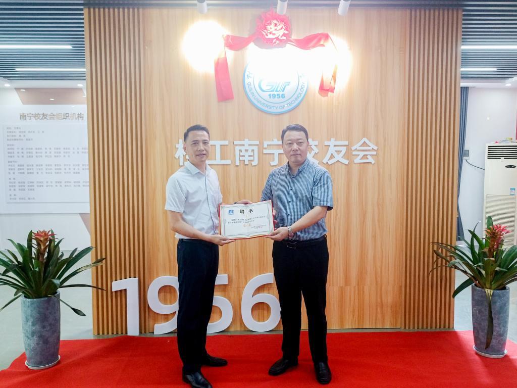 学校党委常委、副校长罗盛锋为南宁校友会南宁分校分会第一届会长颁发聘书