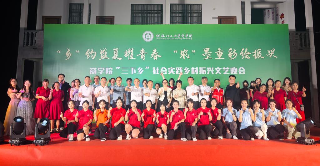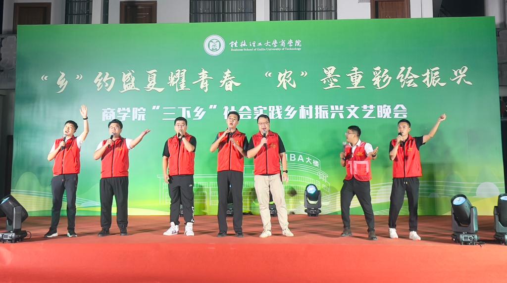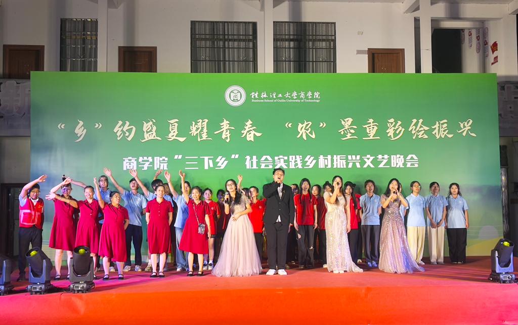 7月11日,商学院“‘乡’约盛夏耀青春 ‘农’墨重彩绘振兴”实践团乡村振兴文艺晚会在灌阳县黄关镇顺溪村举行。