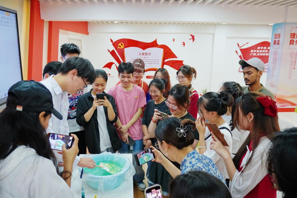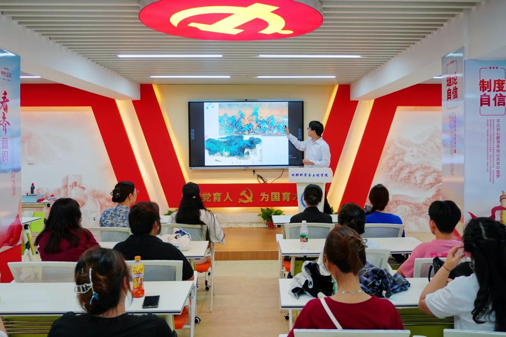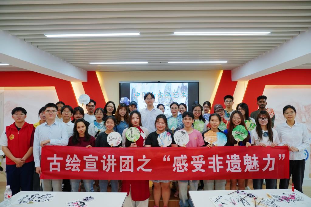 7月6日上午,材料科学与工程学院“中国历代绘画大系”古绘宣讲团在屏风校区材苑“一站式”思政大讲堂举办“感受非遗魅力”文化体验交流活动,材料科学与工程学院、国际教育学院师生代表参加活动。