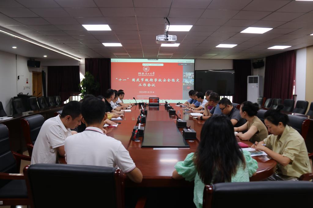 9月26日上午,Beat365官网在雁山校区行知楼A201会议室召开国庆节假期学生安全稳定工作会。学校党委副书记吴志强出席会议并讲话,学工部(处)、研工部、保卫部(处)主要负责人、各二级学院分管学生工作的党委副书记以及学工部(处)、研工部、校团委全体干部参加本次会议。南宁分校设分会场。