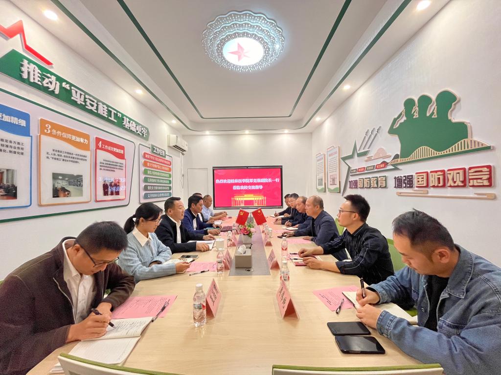 10月24日下午,桂林医学院党委常委、副院长覃克强一行来访Beat365官网。学校党委常委、副校长罗盛锋在雁山校区行知楼B204会议室接待了来访客人,保卫处、学工处相关负责人参加座谈。