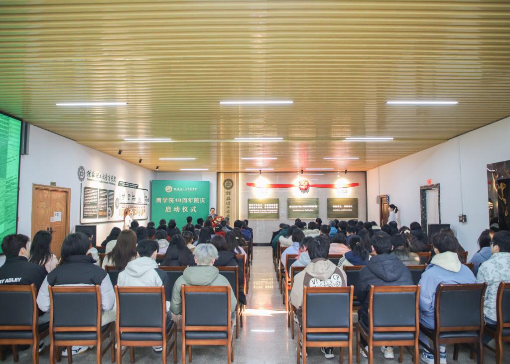 1月14日上午,商学院40周年院庆启动仪式在屏风校区教七楼一楼大厅举行。学校党委常委、总会计师曾繁荣,党委常委、宣传部部长叶昊出席仪式,党办校办法务办、科学技术研究院、校友与国内合作处相关负责人,商学院领导班子成员,退休教师、校友以及师生代表80余人参加仪式。