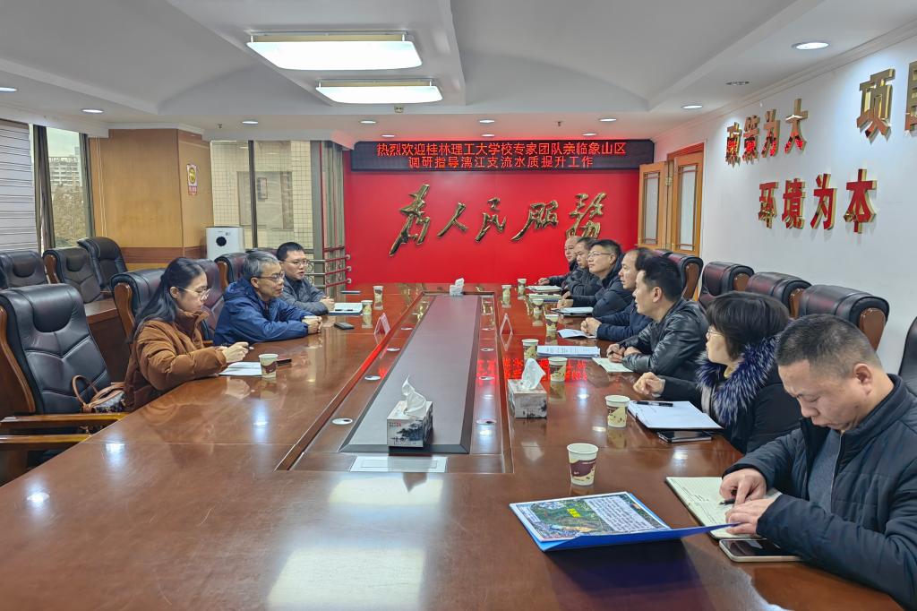 会前,黎贞崇一行实地勘察漓江支流南湾河水环境现状,并就水质提升关键技术问题进行现场研讨。