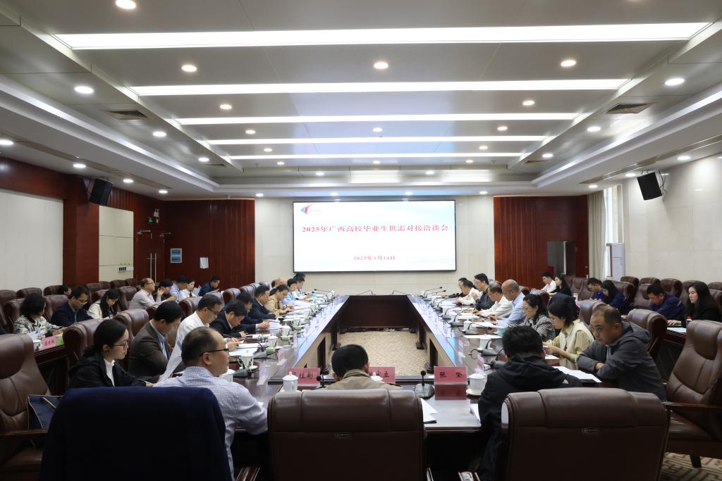 3月14日,自治区教育厅、自治区产业园区改革发展办公室、自治区人力资源和社会保障厅联合组织的2025 年广西高校毕业生供需对接活动在钦州市举行。学校党委副书记吴志强受邀出席供需对接活动,学工部(处)、材料科学与工程学院、物理与电子信息工程学院相关人员陪同参加活动。