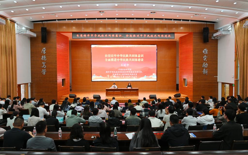 4月26日,学校邀请中国社会科学院铸牢中华民族共同体意识研究基地首席专家、中国社会科学院大学社会与民族学院副院长王延中教授到校作铸牢中华民族共同体意识专题辅导报告。学校党委常委、统战部部长邱杰主持报告会。