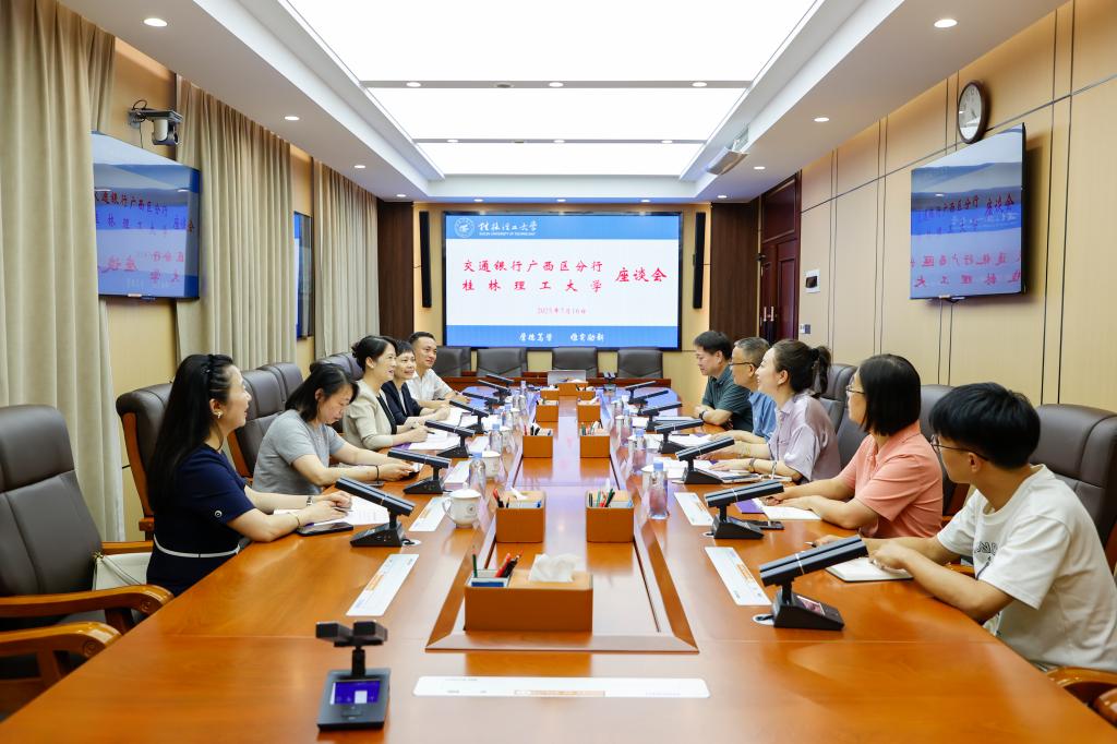 7月16日,交通银行广西分行党委委员、副行长陆小英一行来Beat365官网交流。学校党委副书记、校长王敦球在屏风校区办公楼第一会议室热情接待了来访客人。