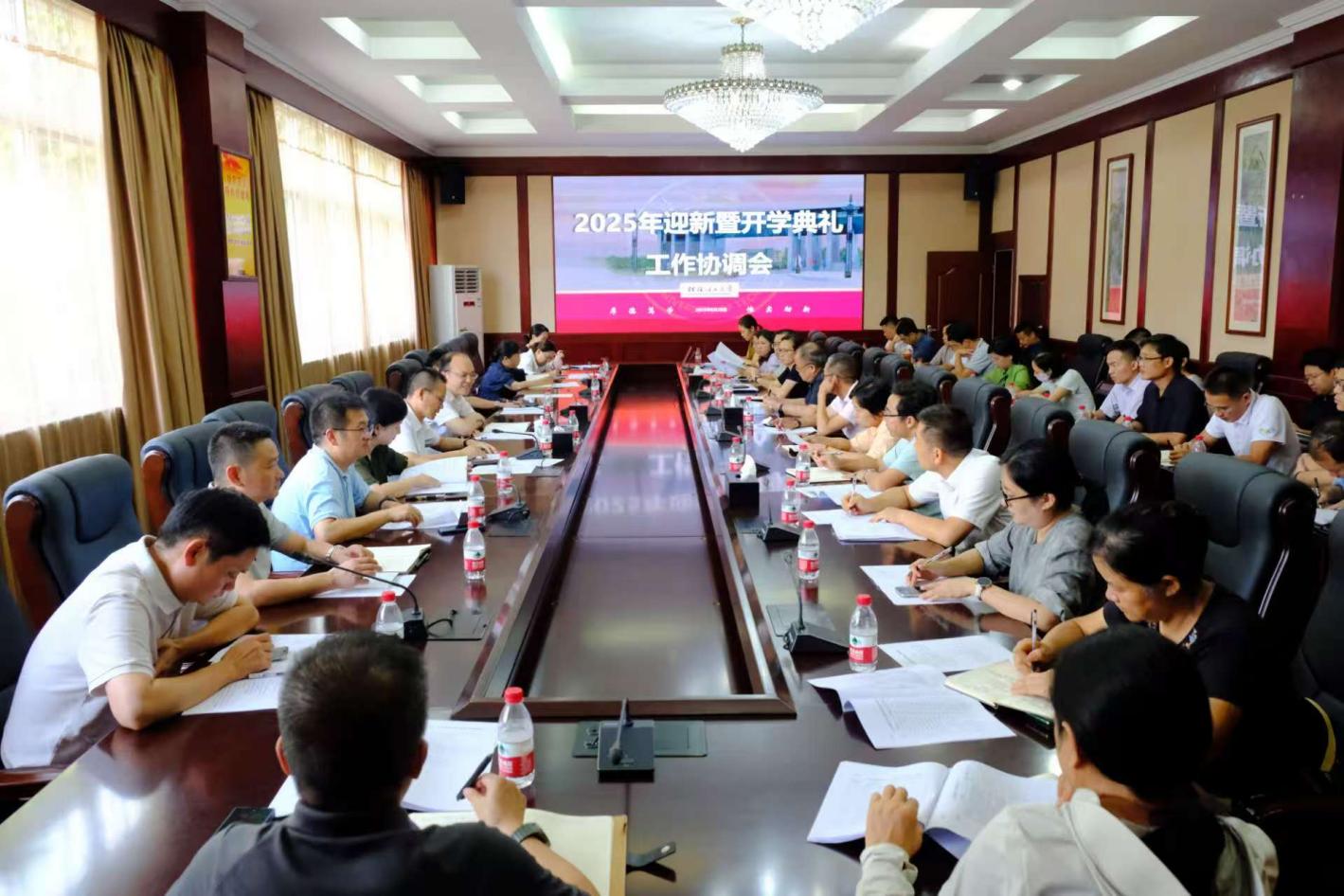 8月28日下午,学校在屏风校区教八楼三楼会议室召开2025年迎新暨开学典礼工作协调会,学校党委常委、副校长唐壮东出席会议并讲话,相关职能部门主要负责人,各二级学院党委书记、分管学生工作的党委副书记参加会议。