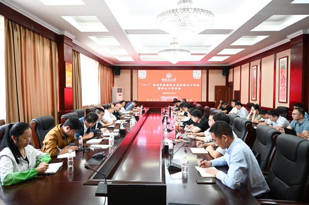 9月25日上午,学校国庆节假期学生安全稳定工作会议在屏风校区教八栋三楼会议室顺利召开。学校党委常委、副校长唐壮东出席会议并讲话。学工部(处)、研工部、保卫部(处)、校团委主要负责人,各二级学院分管学生工作党委副书记以及学工部(处)、研工部、校团委全体干部参加本次会议。南宁分校设分会场。
