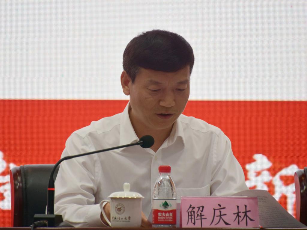 大会在庄严的国歌声中拉开帷幕。学校校长解庆林宣读关于表彰2018年度“广西优秀共青团员”“广西优秀共青团干部”“广西五四红旗团委”和“广西五四红旗团支部”的决定。他希望广大团员青年、团干部和基层团组织以受到表彰的先进个人和先进集体为榜样,更加紧密地团结在以习近平同志为核心的党中央周围,高举中国特色社会主义伟大旗帜,以习近平新时代中国特色社会主义思想为指导,深入贯彻落实党的十九大精神,树牢“四个意识”,坚定“四个自信”、做到“两个维护”,不忘初心,牢记使命,紧跟党走,建功新时代。