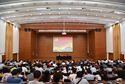 王赣华副书记作了题为“抓好‘两学一做’学习教育,切实加强党员队伍建设”的专题辅导报告。他在报告中总结了目前Beat365官网“两学一做”学习教育的总体情况,并结合学校“两学一做”学习教育实施方案,就进一步深入推进“两学一做”学习教育提出了要求。王赣华副书记强调,深入推进“两学一做”学习教育要在切实提高思想认识、扎实组织党课和学习讨论、立足岗位做贡献和强化基层党建上下功夫、出实招。王赣华副书记指出,开展“两学一做”学习教育,基础在学、关键在做、着力点在改、落脚点在促。“学”要做到“端正态度、保证时间学,原原本本、突出重点学,联系实际、问题导向学,干部带头、全员覆盖学,多向结合、探索创新学”;“做”要落实到“桂工党员先锋行”系列活动当中,立足岗位做贡献,发挥党员先锋模范作用。他强调要通过开展“两学一做”学习教育健全完善和严格落实“三会一课”制度、组织生活会制度、党费收缴管理制度等一系列党员教育管理制度,强化基层党建,提高党员队伍建设水平。