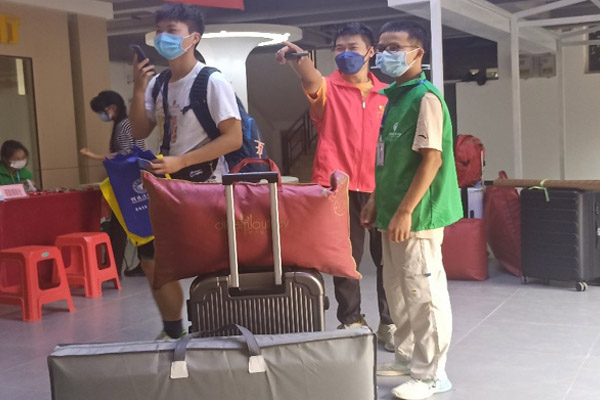 为解决22级新生返校后前几天“封闭式”管理取快递难的问题,教工党员组成党员先锋队,在食堂、学生宿舍、菜鸟驿站等地分别设点,倾心推出新生行李包裹快递代领服务。教师们用爱“搬运”,利用多辆私家车,多次在菜鸟驿站和学生社区之间往返,切实解决新生困难,为新生带来更多温馨和幸福感。