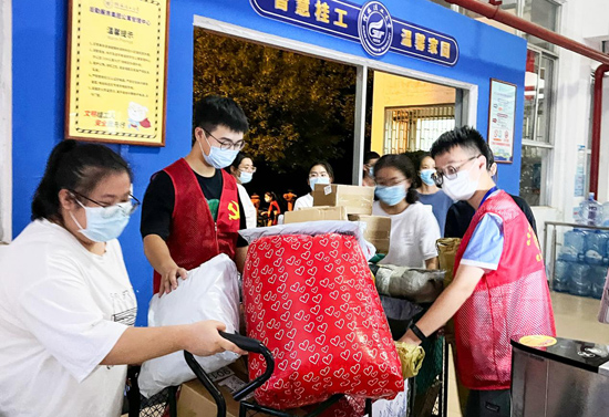 学校教工党员先锋团为新生提供行李包裹快递代领服务。梁精华摄