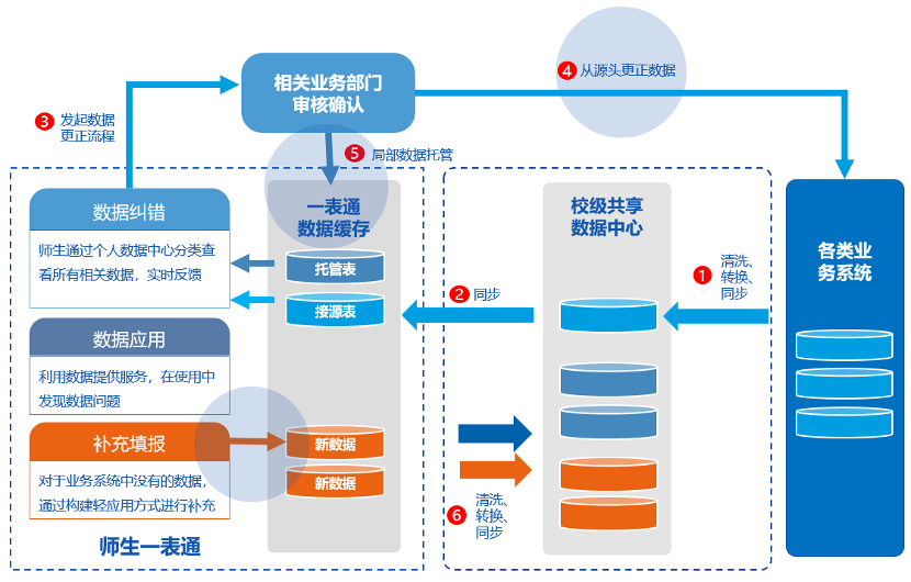 为解决“信息孤岛、数据烟囱、数据质量低、数据管理体系缺失”等问题,Beat365中文官方网站建设了“智慧校园数据治理与服务”项目,按照“应采尽采”的数据共享思路,对人事、教务、学工、科研、资产、一卡通、财务等十二个业务系统的数据进行采集、清洗转换和存储,形成物理可分布、逻辑可集中的数据资源存储分布格局,打破数据孤岛,建设学校全域数据中心,实现数据的互联互通和互享。