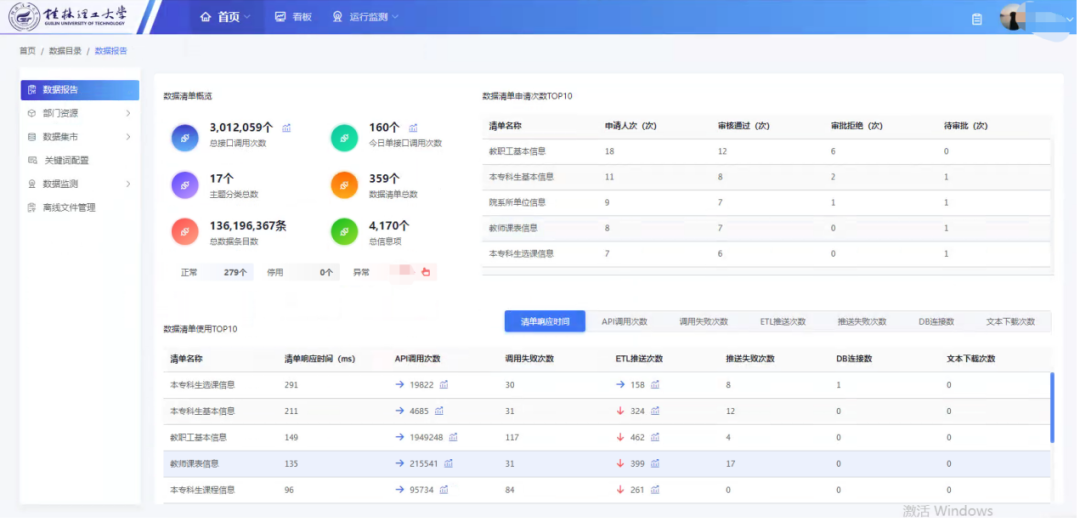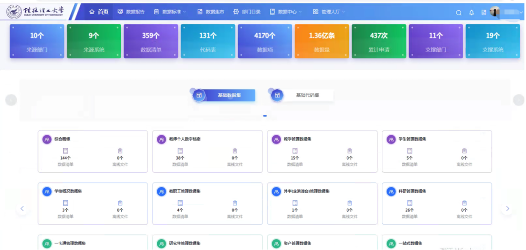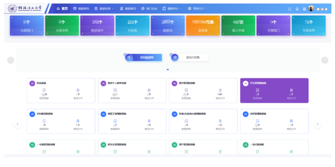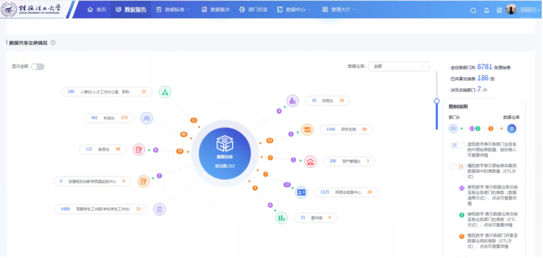 经过近两年数据治理建设,截至目前,Beat365中文官方网站已完成 “五个一”建设,在“五个一”的基础上,共集成业务系统数量24个,涉及7289张数据表,数据项143201个,发布共享数据标准模型226个,89张数据表,数据项2013个,制定数据治理制度规范文件5份,业务数据涵盖师生的学习、工作、生活等方面。数据中心按照“一数一源”制定统一标准规范,为24个业务系统提供了数据共享交换服务,有效支撑了各部门业务之间的高效协同与数据联动。