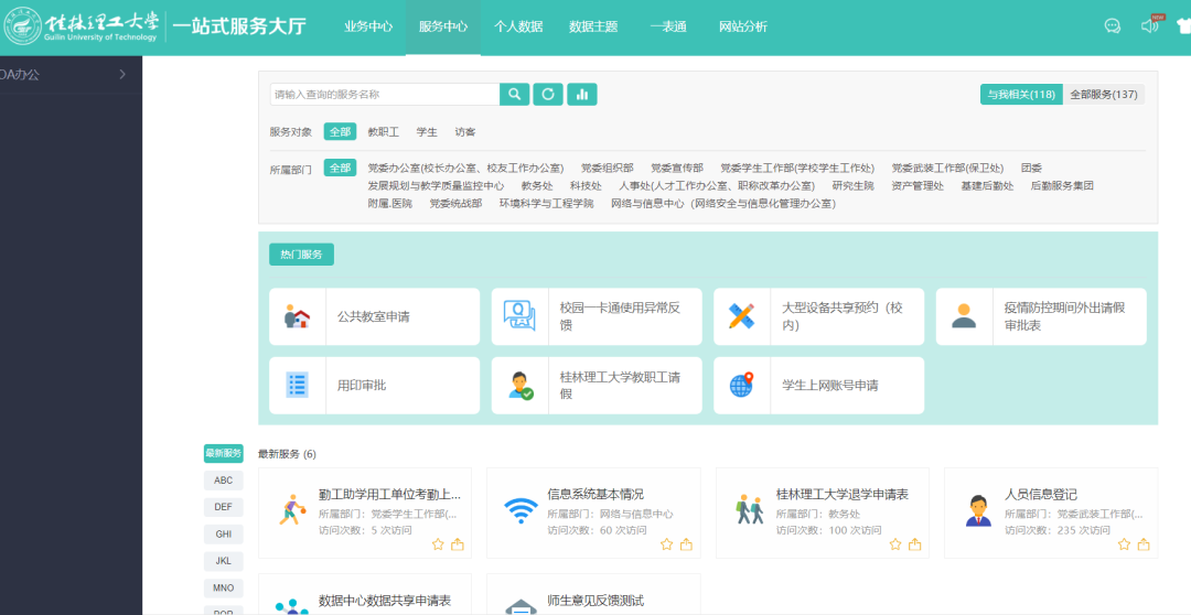 “一站式服务平台”作为智慧校园建设重要内容之一,解决师生办事来回跑、跨部门业务协同不及时等难题。可真正实现管理与服务一体化、服务与数据应用的一体化、PC移动服务方式一体化,多渠道全方位为师生服务,加快推进了学校数据服务融合,提高师生“获得感”。一站式服务大厅兼有收文、发文、工作督办等办公一体化功能。通过对业务的梳理、优化、再造、公开,实现服务治理;通过对数据的共享、利用、纠错和反哺,提高数据中心数据质量;通过碎片化轻应用实现对长尾业务的敏捷支持,实现IT治理。服务治理、数据治理、IT治理,共同推动学校信息化治理全生态链的变革,为Beat365中文官方网站未来的信息化服务发展奠定坚实的基础。