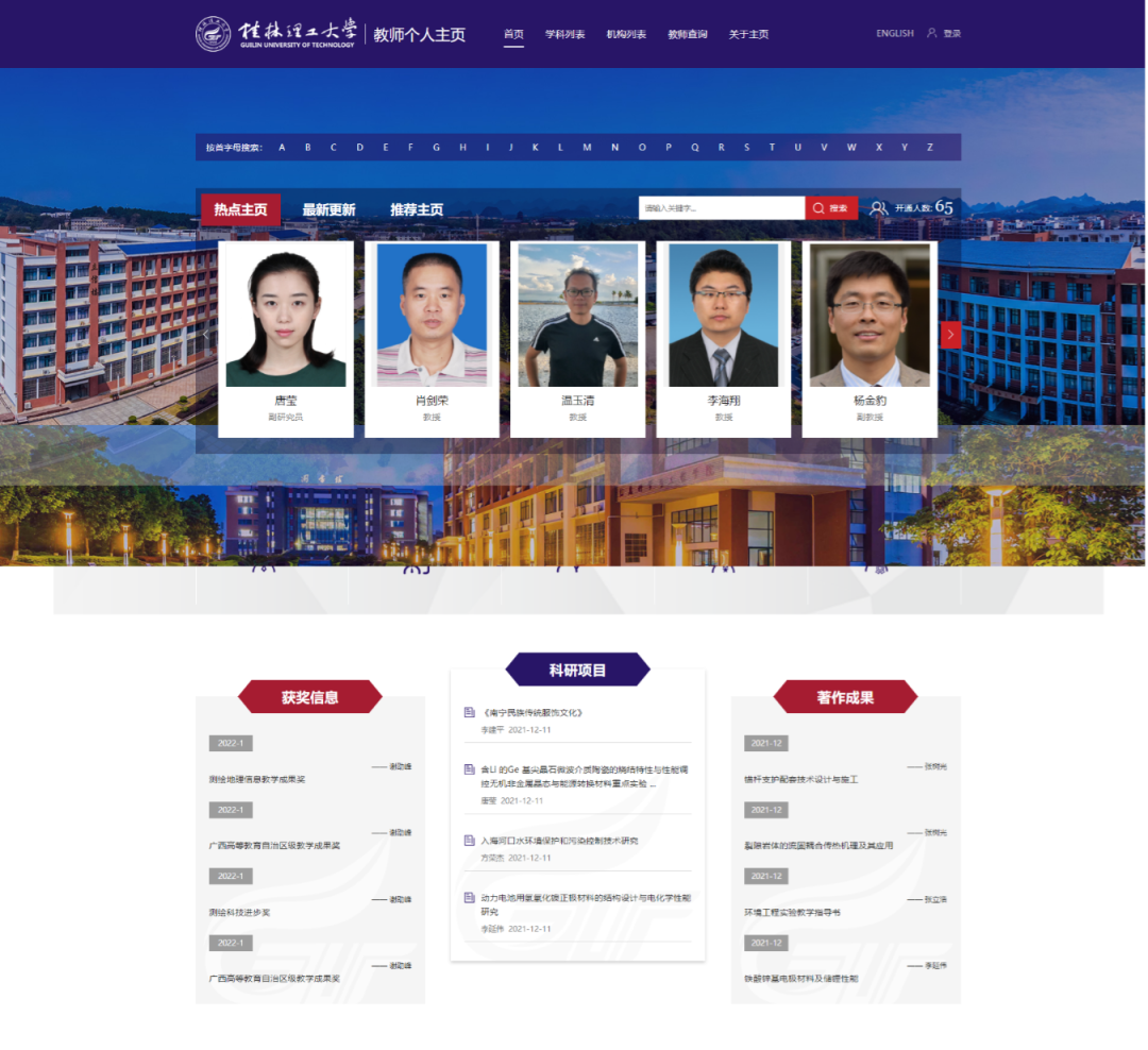 “教师个人主页系统”是为全校教师提供的个人主页管理与发布平台。所展示教师个人基本信息、教学情况、研究成果、著作发表、荣誉获得等内容自动从师生个人数据中心获取。该平台是教师的重要名片,具有对外学术交流、对内辅助教学的作用,既是教师对自身学术研究成果的宣传,也体现了学校在科研人才培养方面的水平。