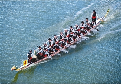 浙江省第二届国际龙舟公开赛暨温州市第九届龙舟系列赛(总决赛)日前在温州龙舟运动中心鸣锣开赛,来自浙江省内的32支龙舟队展开激烈角逐。图为参赛选手驾着龙舟在500米直道赛中挥桨逐浪。