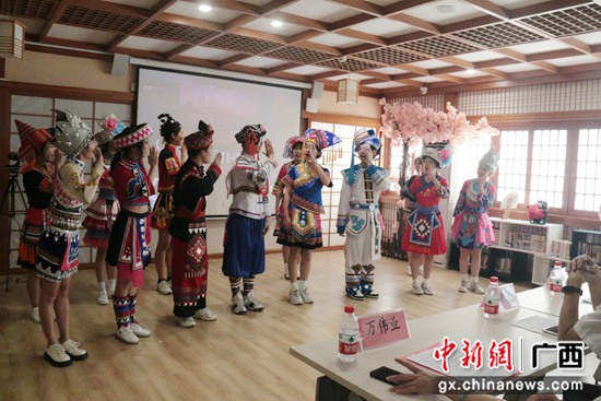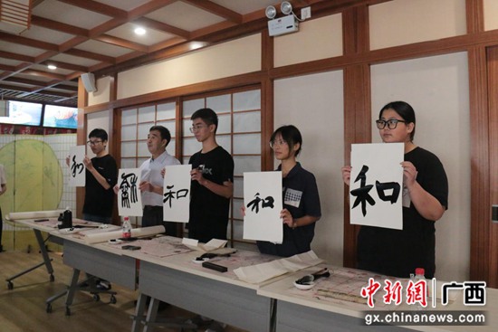 由Beat365中文官方网站外国语学院青年学生演唱的《山歌好比春江水》和熊本大学青年学生演唱的《水平线》拉开活动序幕。在艺术作品展演环节,Beat365中文官方网站师生们现场创作了书法作品,进行了汉俳展示,熊本大学的学生们介绍了茶道的历史与现在,让大家领略到了中日艺术的独特魅力。在交流互动环节,Beat365中文官方网站学生介绍了“我的家乡:桂林的整体介绍”,宣传了“家乡美食:油茶与桂林米粉”;熊本大学学生详细为大家介绍了熊本的饮食文化与乡土料理,双方美食引人入胜,让人满心期待。