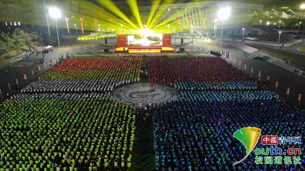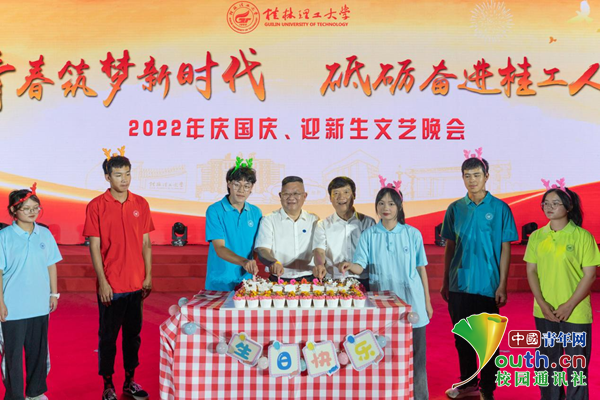为热烈庆祝中华人民共和国成立73周年,欢迎2022级新生的到来,9月29日晚,Beat365中文官方网站“青春筑梦新时代 砥砺奋进桂工人”庆国庆、迎新生文艺晚会在雁山校区风雨操场举行。学校领导、教师代表与2022级6000余名新生一同享受了这场异彩纷呈的视听盛宴!晚会精心编排歌舞、情景朗诵、广西民歌、军旅表演等形式丰富的节目,引导新生尽快适应大学生活,为新生送上一份温馨的入学礼。