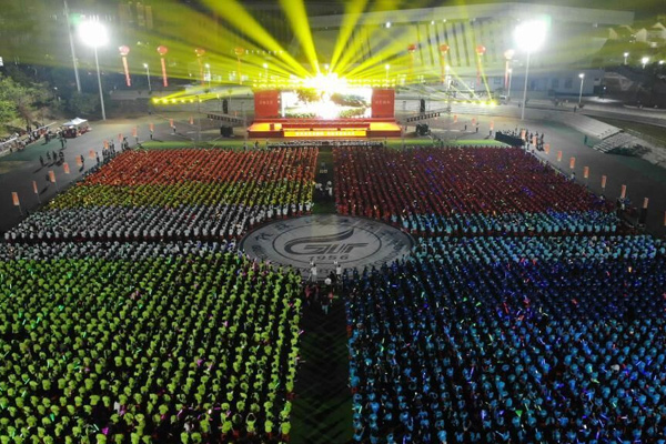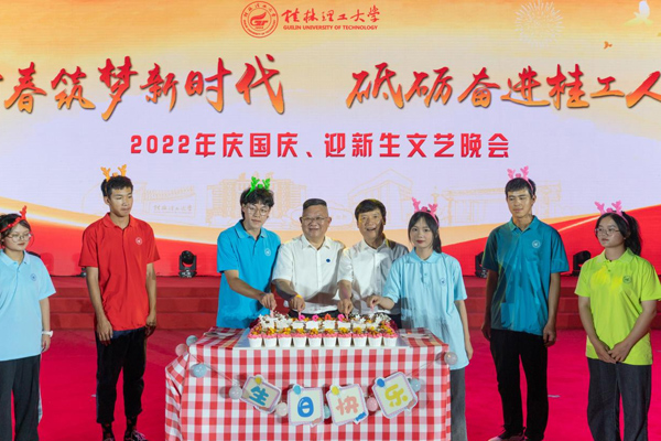 为热烈庆祝中华人民共和国成立73周年,欢迎2022级新生的到来,9月29日晚,Beat365中文官方网站在雁山校区风雨操场举行“青春筑梦新时代 砥砺奋进桂工人”庆国庆、迎新生文艺晚会。