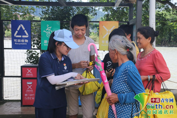 环境科学与工程学院实践团成员向社区居民科普垃圾分类相关知识。学校供图
