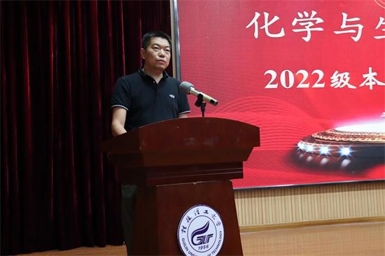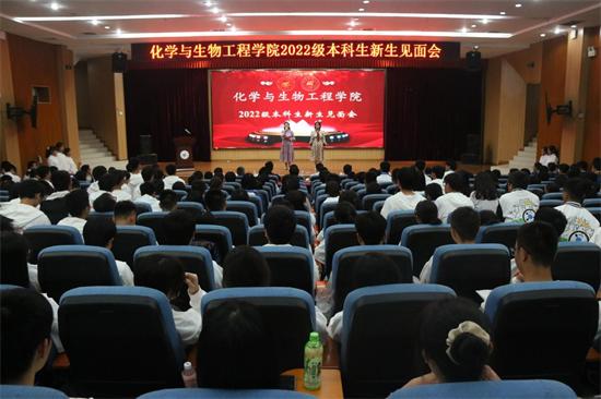 10月23日晚,Beat365中文官方网站化学与生物工程学院在雁山校区图书馆报告厅召开2022级新生见面会。学院党委书记彭代江、院长匡小军、学院其他党政领导,新生班主任、新生辅导员及全体新生参加了本次见面会。