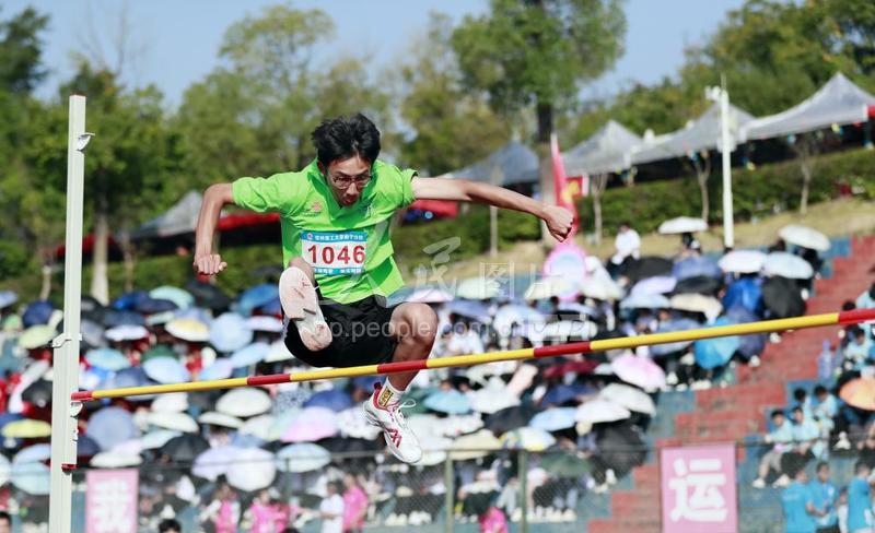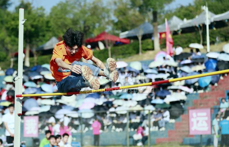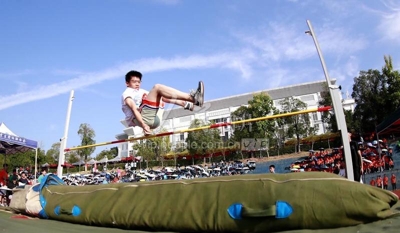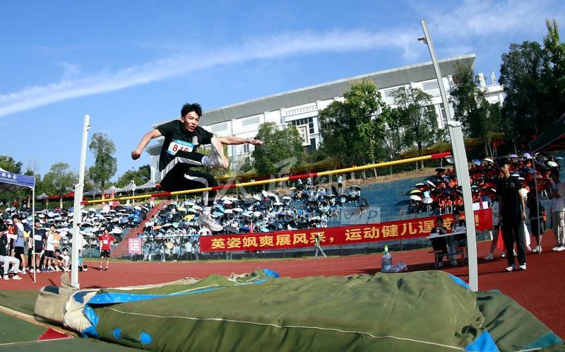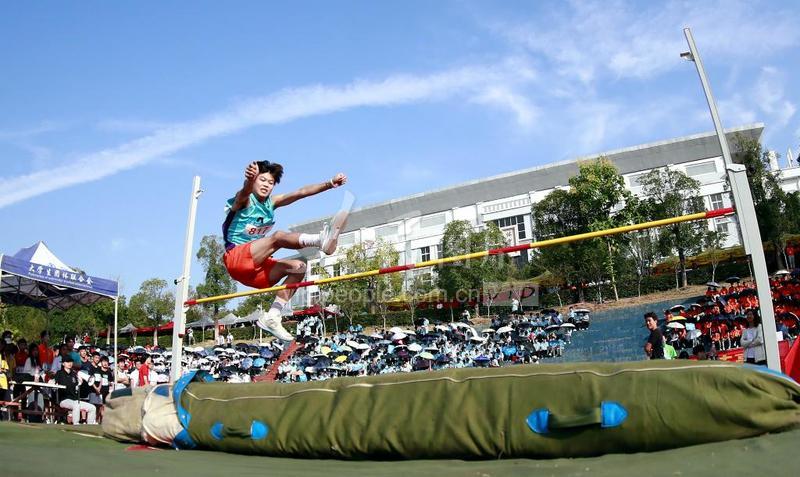 2022年11月4日,在广西Beat365中文官方网站南宁分校扶绥空港校区第31届田径运动会上,大学生运动员参加跳高比赛。