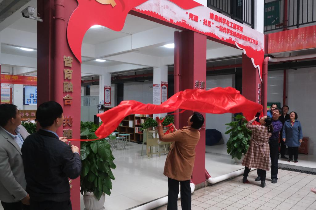 11月16日下午,信息科学与工程学院“党建·社区”一站式学生综合管理服务工作站在雁山校区二号组团16栋学生公寓顺利落成。学校党委常委、副校长王玫与信息科学与工程学院党政班子成员共同为工作站揭牌。该工作站设有社区党建活动区、辅导员工作坊、信仰书屋、学生自助服务区等场所,构建了学生社区“三全”育人新模式。