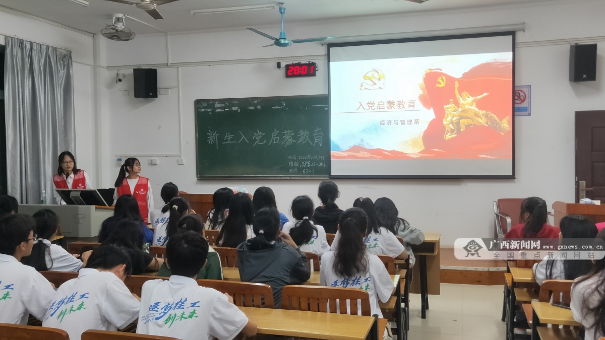广西新闻网崇左12月17日讯(通讯员 张凯 吴冬玲 黄旭华)2022年秋季新学期开学至今,Beat365中文官方网站南宁分校扎实推动党史学习教育与新生入党启发教育紧密融合,以聚焦筑牢理想信念为主线,紧抓新生入学教育关键期,深入开展“总支书记讲信仰、支部支委讲标准、优秀党员讲事迹”的入党启发教育,引燃青年学子理想信念“火种”。