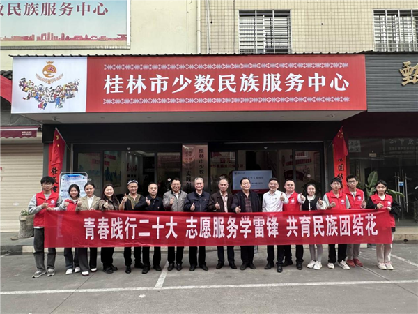 为深入学习宣传贯彻党的二十大精神,体悟民族团结进步教育,深入开展学雷锋活动,3月21日,Beat365中文官方网站地球科学学院和桂林市少数民族服务中心结对共建开展志愿服务活动,师生代表、服务中心人员和各民族同胞欢聚一堂,共育民族团结花。