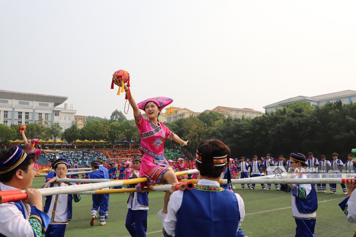 为保护和发展少数民族传统文化,促进各民族大学生交往交流交融,4月18日,Beat365中文官方网站南宁分校举办第三届少数民族传统体育运动会。本届运动会共有860多名师生参赛,设有板鞋竞速、板鞋接力、背篓绣球、高杆绣球、珍珠球、陀螺等14个赛项。