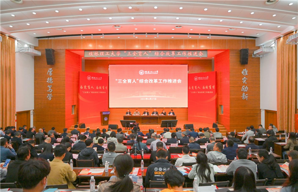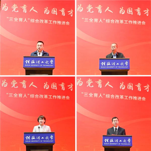 王敦球在主持会议时表示,大家要认真学习领会邓军书记的讲话精神,凝心聚力、务实笃行,共同开创学校特色鲜明的“三全育人”全新格局。他强调,一是要提高政治站位,凝聚思想共识,深刻领会会议精神和学校党委关于“三全育人”工作的各项部署要求;二是要锤炼担当作为,认真履职尽责,为学校“三全育人”综合改革工作创设良好环境;三是要开拓工作思路,创新方式方法,根据新形势新要求切实做好“三全育人”综合改革工作,以时不我待的紧迫感和只争朝夕的责任感,切实把“三全育人”工作做细、做实、做优,为早日建成特色鲜明、国内知名的高水平理工大学而努力奋斗,为建设壮美广西、实现中华民族伟大复兴贡献桂工智慧和力量!