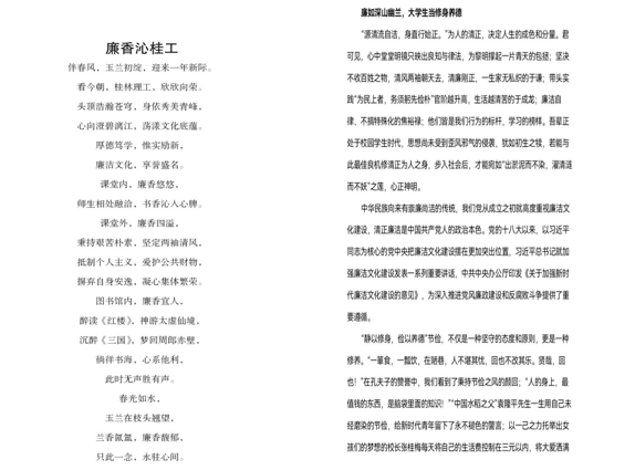 笔墨抒胸臆,廉洁入人心。在本次征文活动中,同学们用一篇篇诗歌、散文、随笔、信件等征文作品,书写了环院学子的理想信念、价值理念、优良传统等正直的思想和心灵,弘扬廉洁教风、廉洁学风和廉洁家风。同学们以行动践行初心使命,以笔墨描绘廉洁精神,提炼廉洁文化的思想内涵、时代价值和教化功能,为培养社会主义建设者和接班人,营造良好育人环境和政治生态。