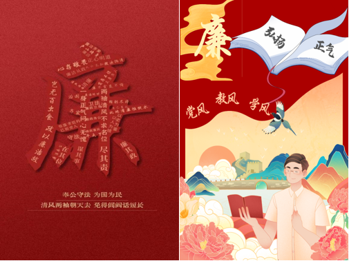 树清风正气,创清廉校园。在本次创意作品的活动期间,环院学子积极挖掘校园文化、思想价值观等蕴含的廉洁元素,创作海报、文创设计等平面创意作品,提炼廉洁文化的思想内涵、时代价值,构思巧妙、立意深远,表达出廉洁自律、拒腐防变的思想理念,传播了崇德向善、崇廉尚俭的正能量,展现出了作为社会主义建设者和接班人积极的精神面貌。
