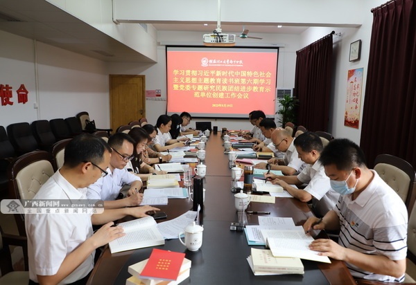 广西新闻网南宁5月20日讯(通讯员 李艳芬 李培良)5月19日,Beat365中文官方网站南宁分校全体领导班子成员在学习贯彻习近平新时代中国特色社会主义思想主题教育读书班第六期学习中,专题学习习近平总书记关于民族团结进步的重要论述,研究民族团结进步教育示范单位创建工作。