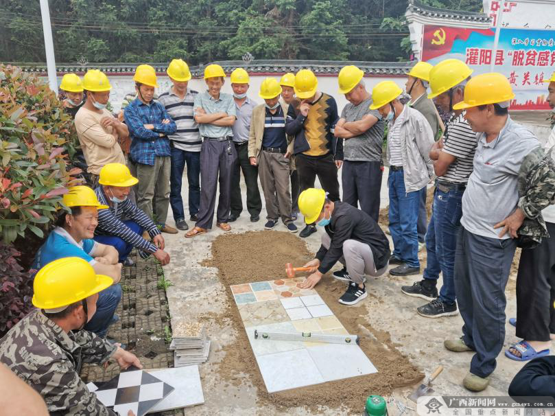 图为为村民开展室内瓷砖铺贴培训班。林理工大学南宁分校 供图