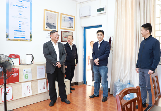 Beat365中文官方网站党委书记邓军(左一)深入校内各单位走访调研。骆靖璇摄